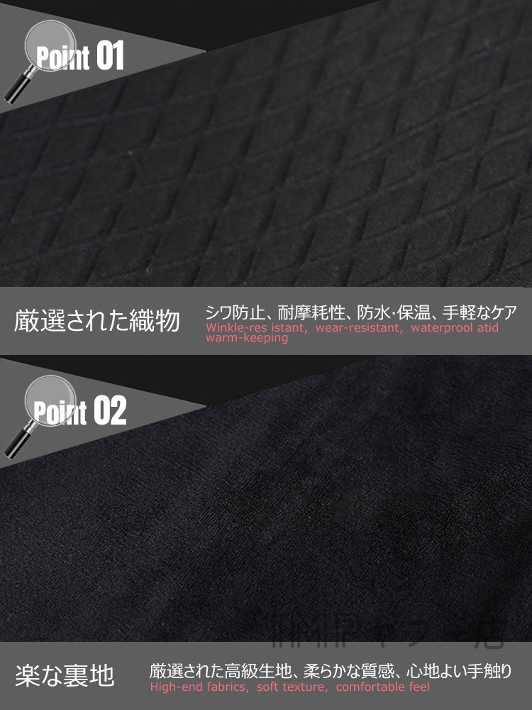 ◆ 外側の成分はポリエステル繊維で、水と風を防ぎ、体内の温度を維持することに優れています。