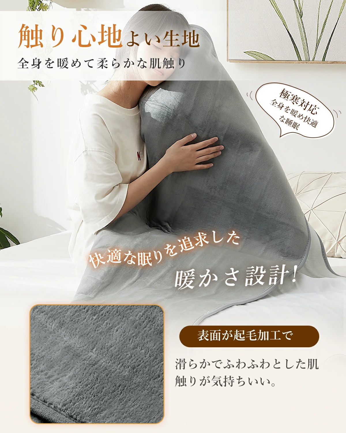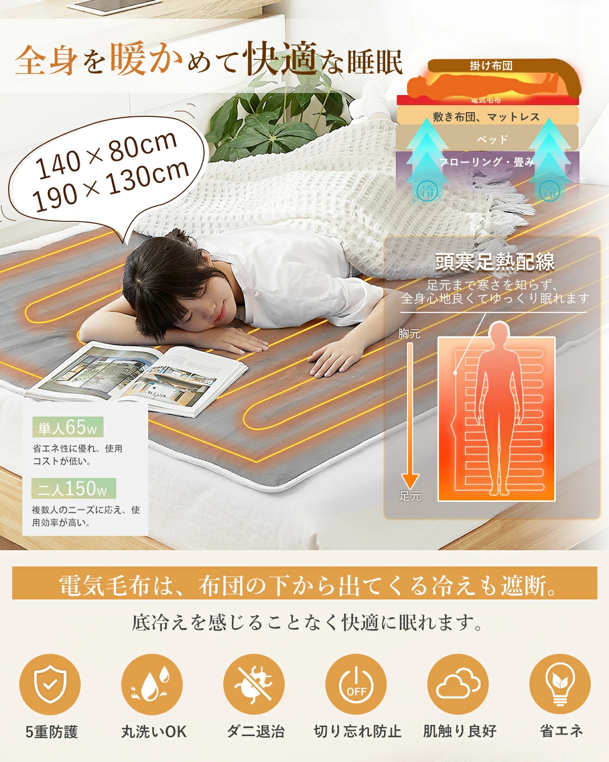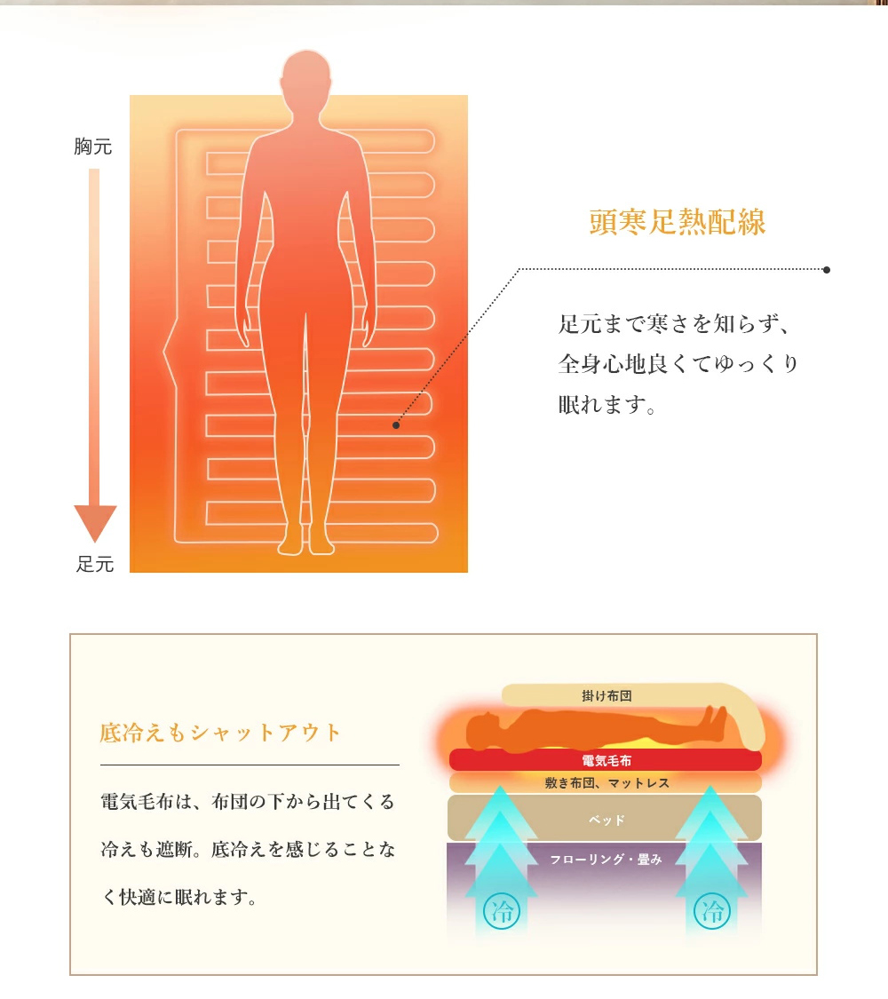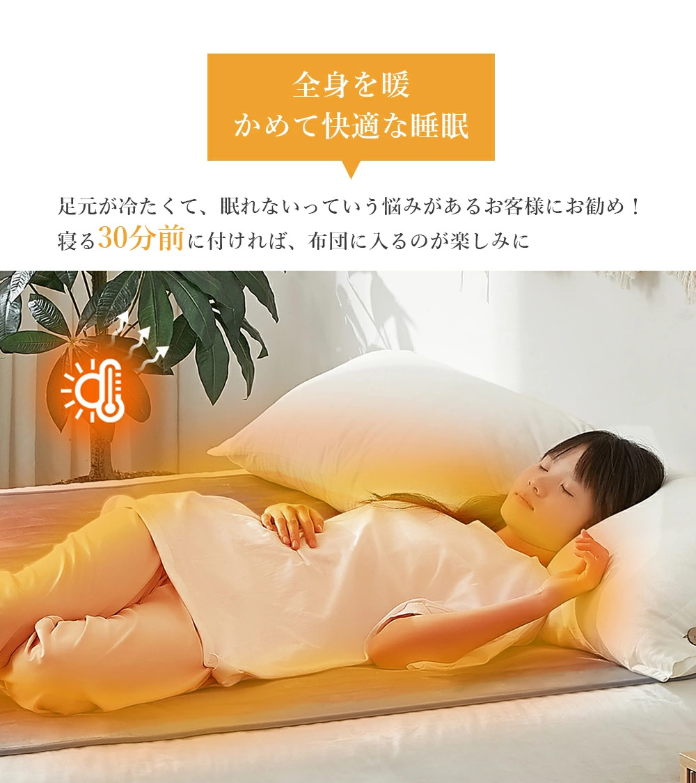 ●【頭寒足熱設計で快眠サポート】頭はスッキリ、足元はしっかりあたたか。理想的な体温バランスを保ち、睡眠中の冷えを防ぎます。寒い夜でも、朝までぐっすり快眠。