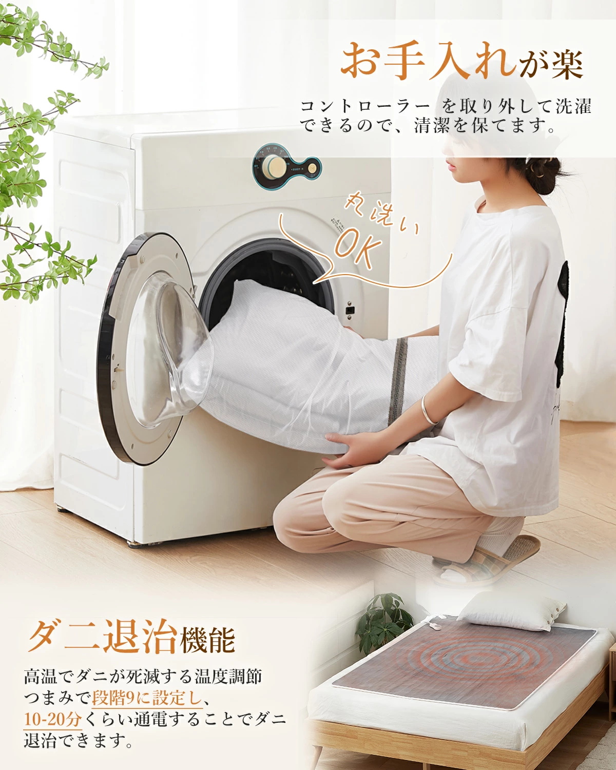 ●【洗濯機で丸洗いOK&ダニ退治】自宅で洗濯が簡単、コントローラーを取り外し、電気毛布を洗濯ネットに入れて、洗濯機で丸洗い可能。高温でダニが死滅する温度調節つまみで段階9に設定し、10-20分くらい通電することでダニ退治できます。