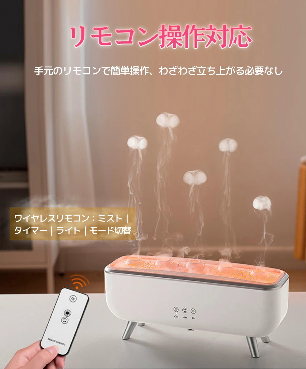 【SNS大人気】クラゲ 加湿器 アロマディフューザー 超音波式 卓上加湿器 超音波加湿器 アロマ加湿器 7色LEDライト リモコン付き 300ml大容量 小型 お手入れ簡単