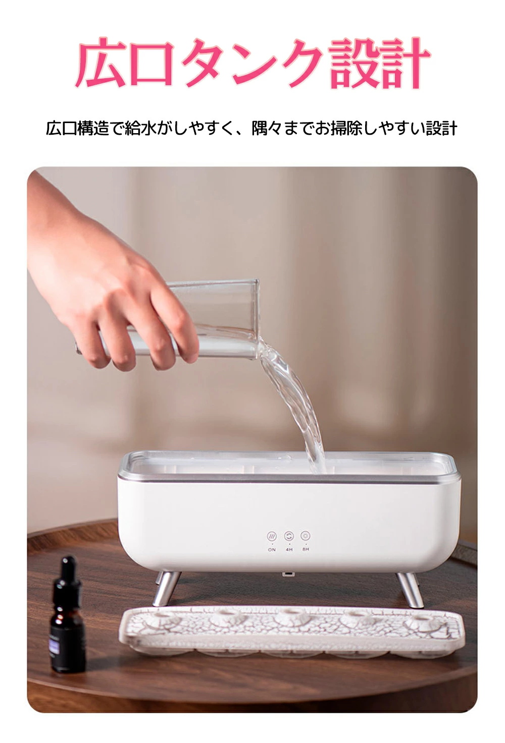 ●アロマ機能:アロマオイルを追加することで、空気をリフレッシュし、ストレスを軽減し、室内空気の品質を向上させます。