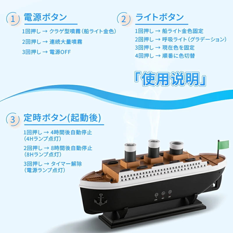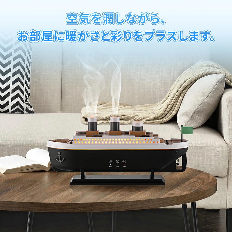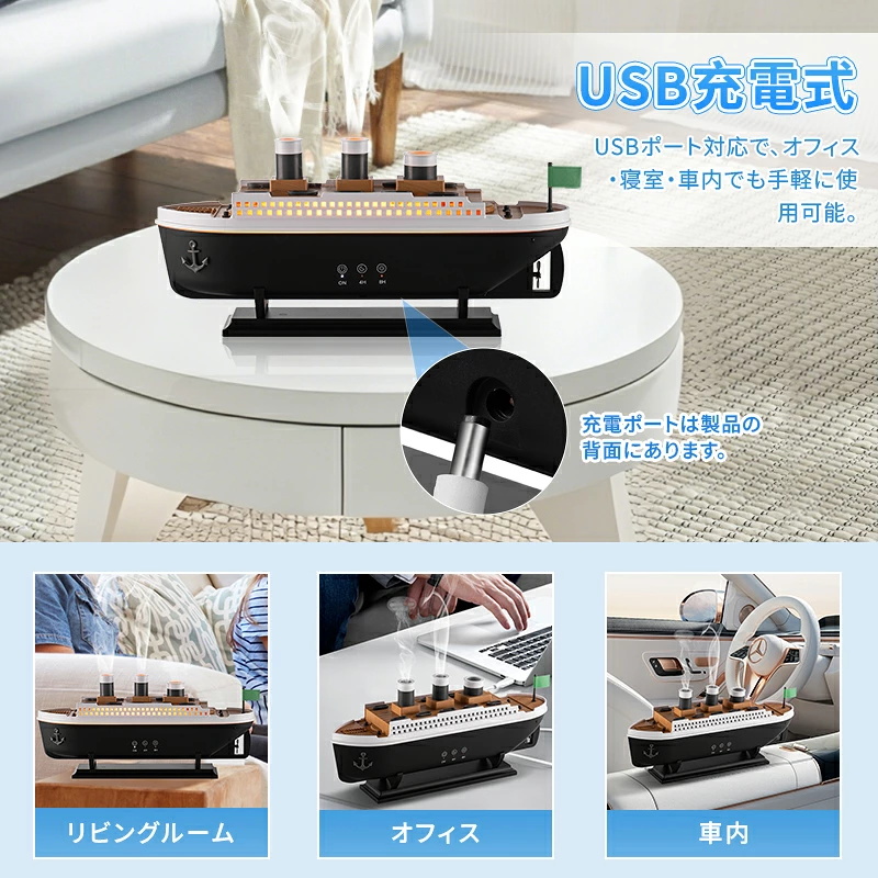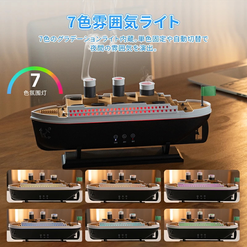 【SNS大人気】クラゲ アロマ 加湿器 くらげ加湿器 超音波 アロマディフューザー 船型 卓上 USB充電式 7色LEDライト リモコン付き タイマー 自動停止機能 ギフト