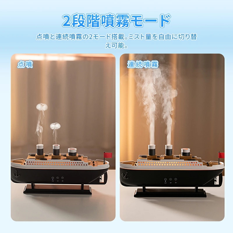 ★250mlの水タンクとダブル噴霧口を搭載し、2種類の噴霧モードで柔らかなミストを広範囲に届けます。