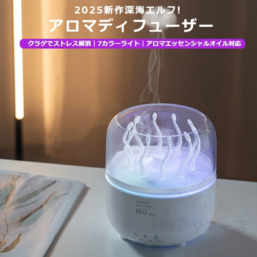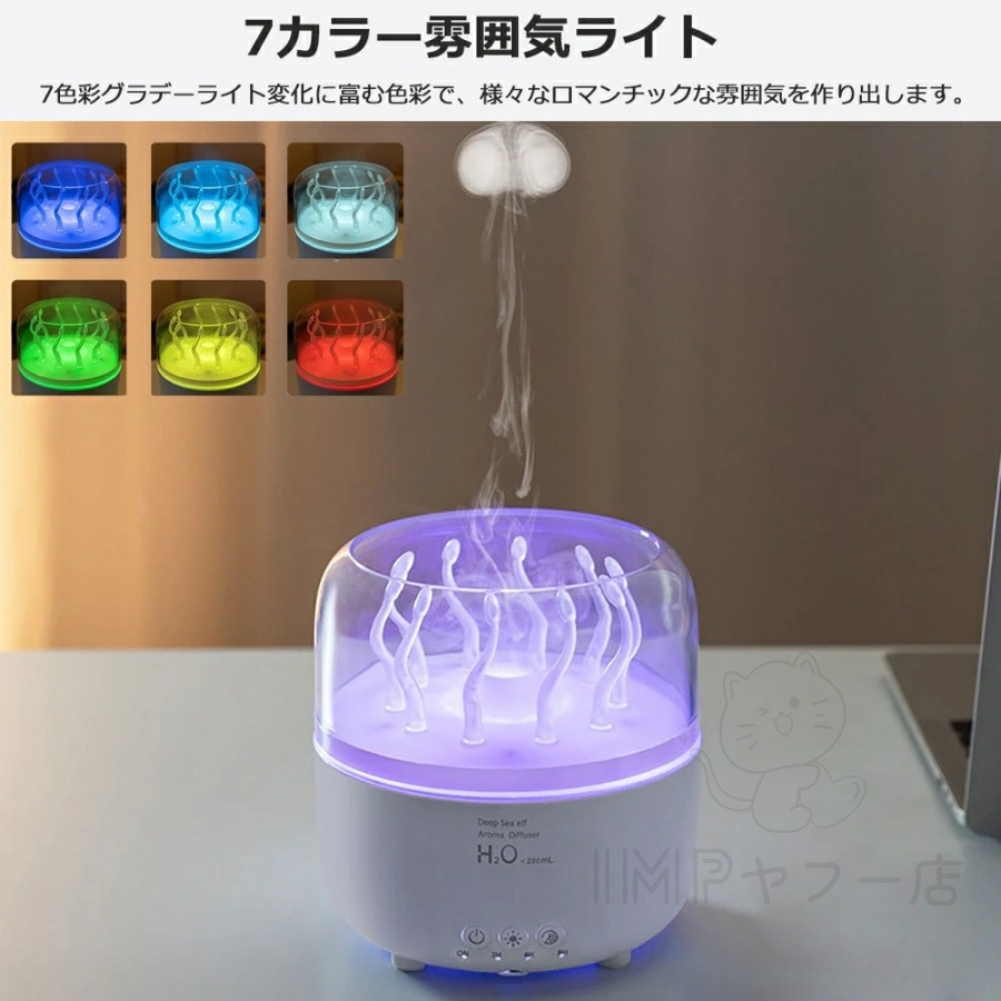 加湿器 小型 コンパクトアロア加湿器 くらげ加湿 クラゲ加湿 卓上加湿器 超音波 クラゲ ディフューザー(製品説明ではありません)