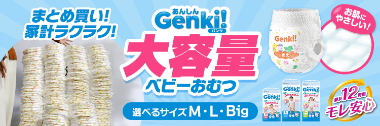 (検索用:オムツ・M・150枚・L・126枚・ビッグ・108枚・パンツ・ふわもちタッチ・肌に優しい・横モレ・最長12h・さらさら・おむつ・紙おむつ・Genki・3個セット・4967576789967・4967576789974・4967576789981・アイリスオーヤマ)