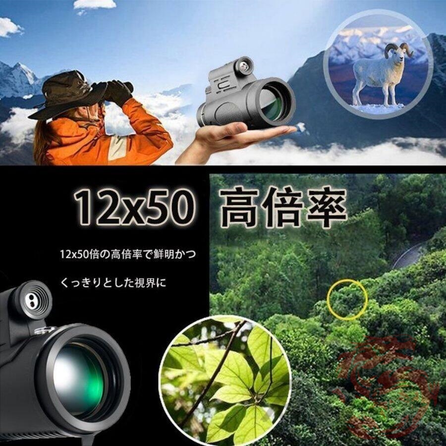 単眼鏡 高倍率 軽量 12x50赤外線レーザー単眼望遠鏡 防水霧 耐衝撃 HDハイパワー単眼スコープ 三脚付き、ハイキング、キャンプ、観光 バードウォッチング