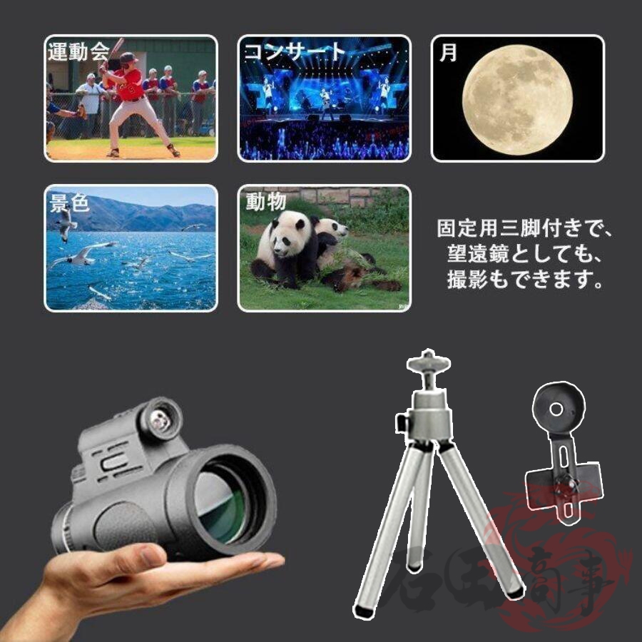 軽量で持ち運びに便利:回転式アイマスクを一眼で見ることができます。近視または非近視の人にとって、コンパクトな単眼はターゲットを近づけます。ブラケットや写真クリップに接続でき、携帯電話で写真や動画を撮影できます。