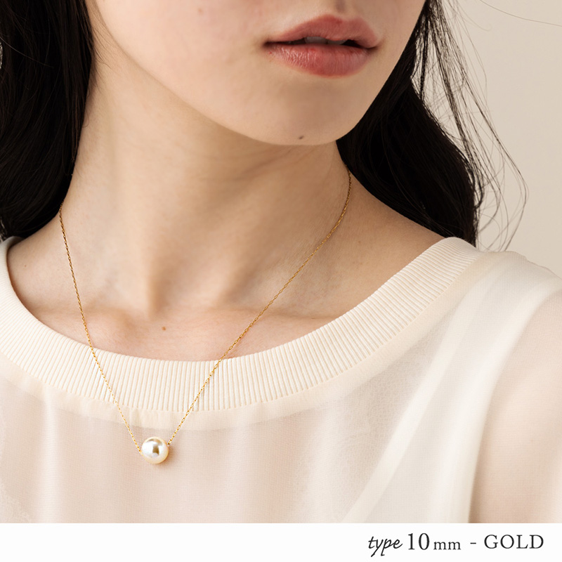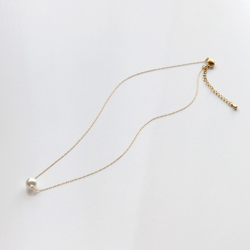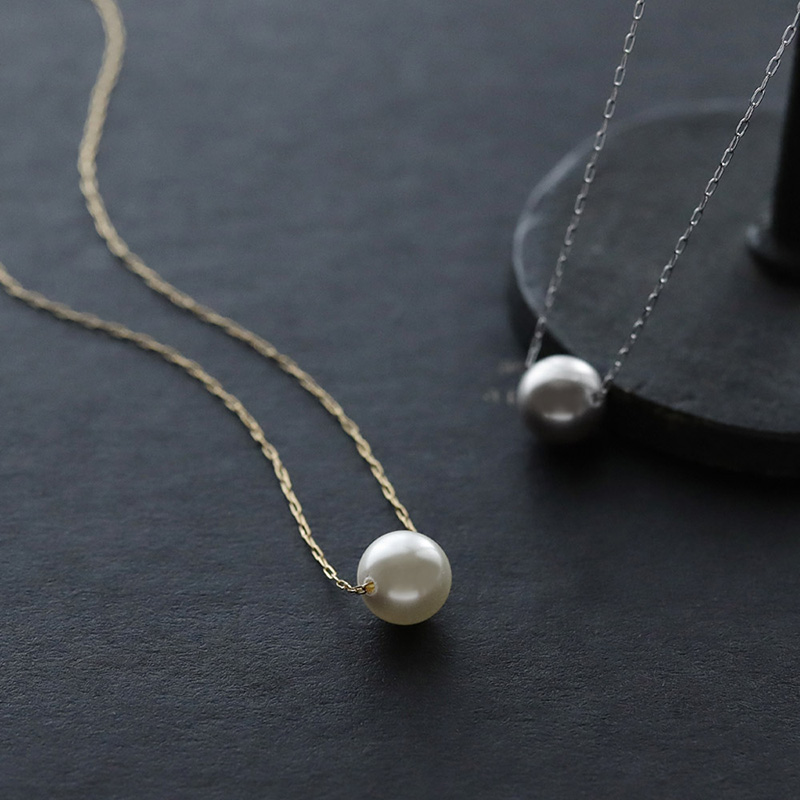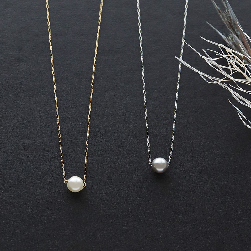 華奢なチェーンと艶やかな一粒パールが胸元に映える上品なネックレスです。