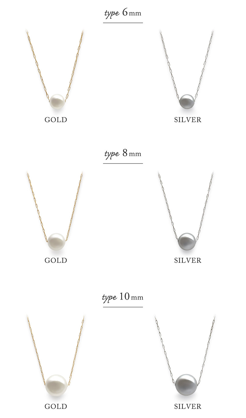 パールのサイズは6mm、8mm、10mmからお選びいただけます。