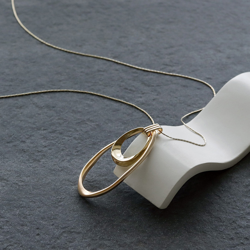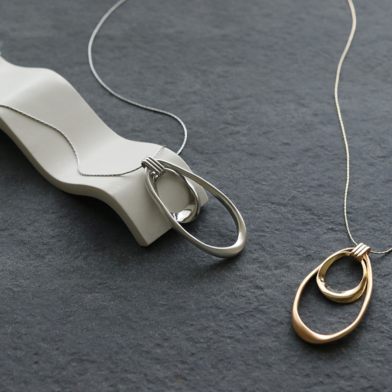 スタイリッシュな変形ドロップモチーフのペンダントネックレスです。