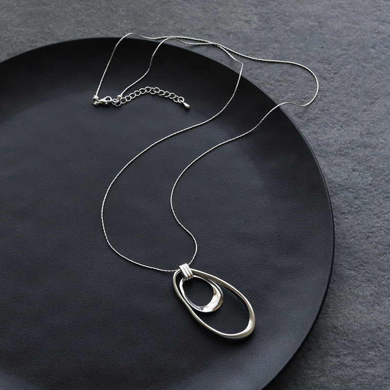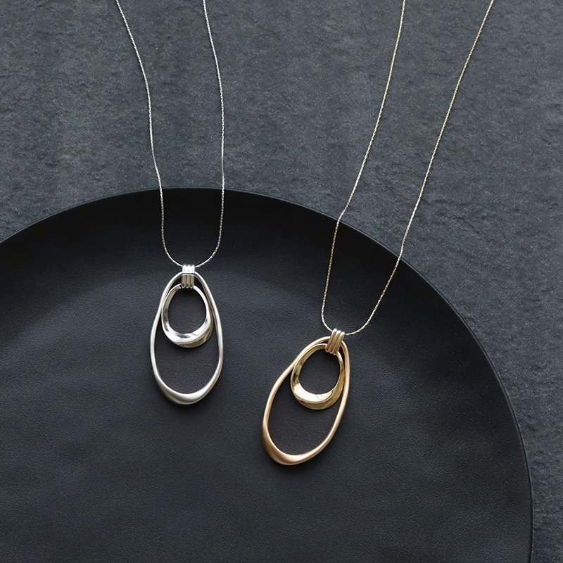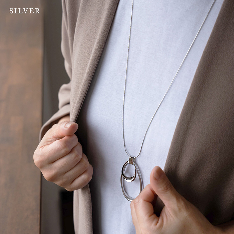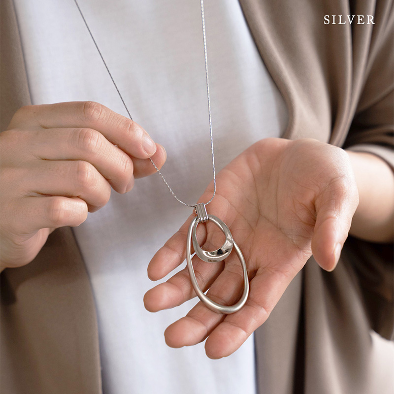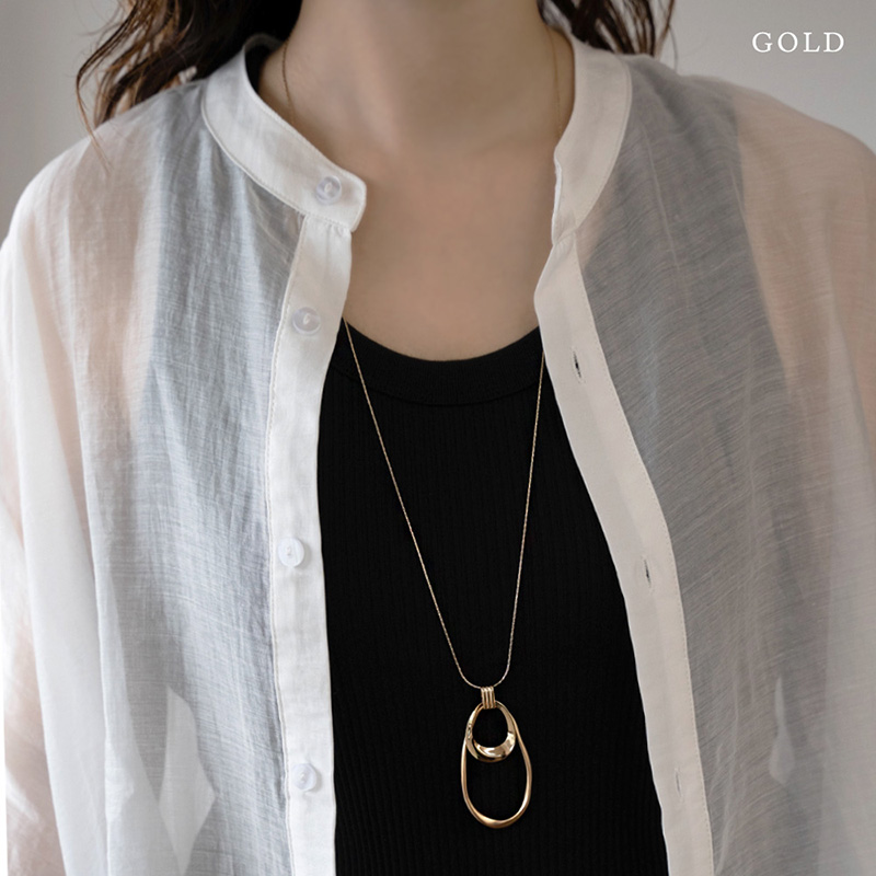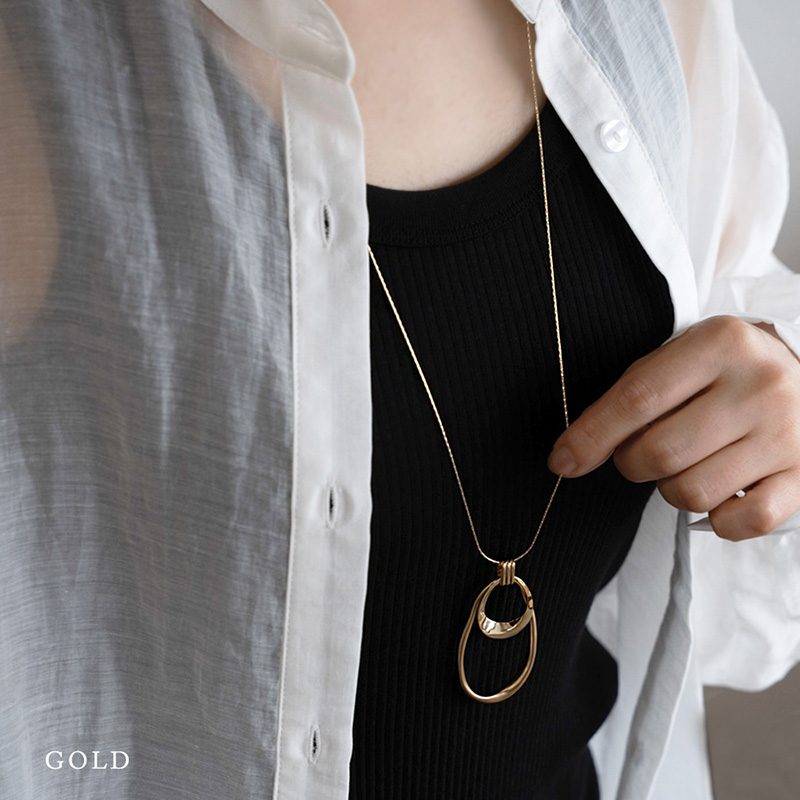 ネックレス ロングネックレス レディース オーバル ドロップ 変形 チェーン メタル ゴールド シルバー ニッケルフリー 大人 デイリー シンプル プレゼント