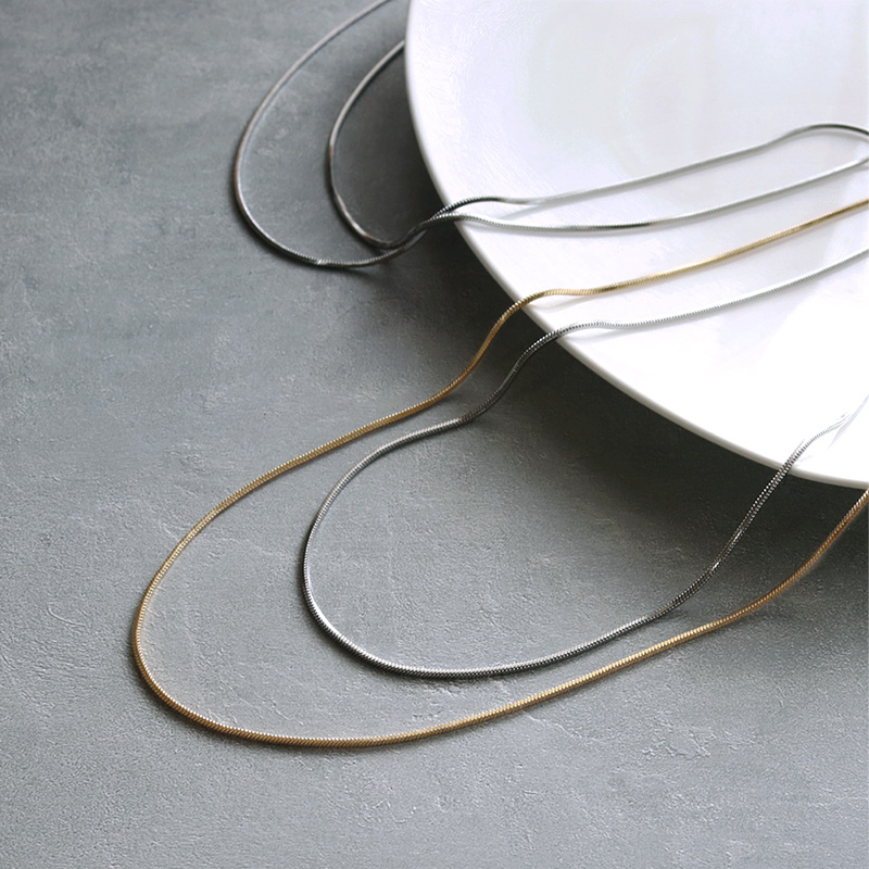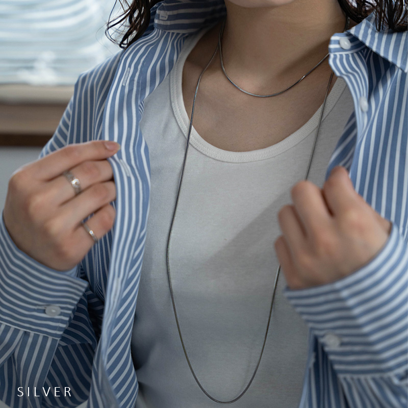 上品に煌めくシンプルなスネークチェーンのロングデザイン。