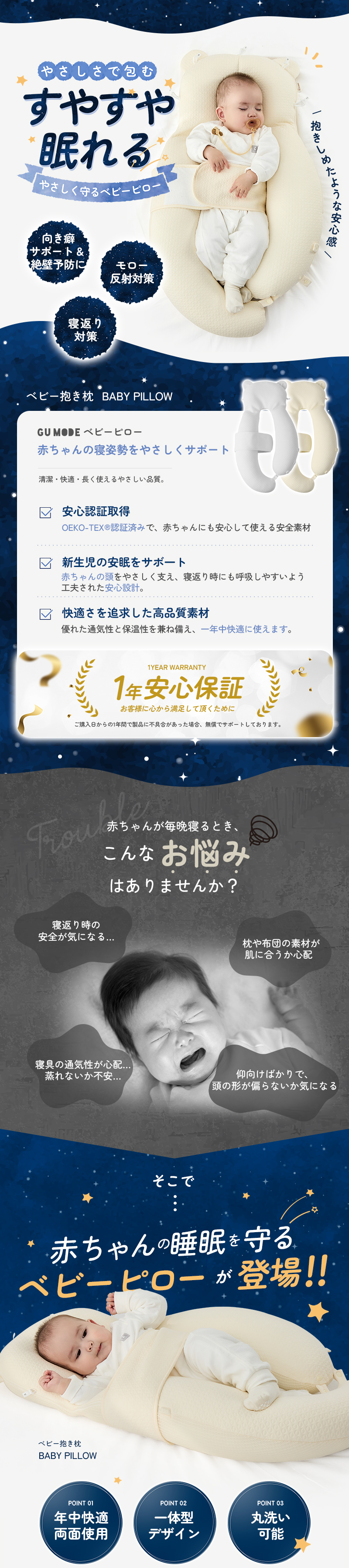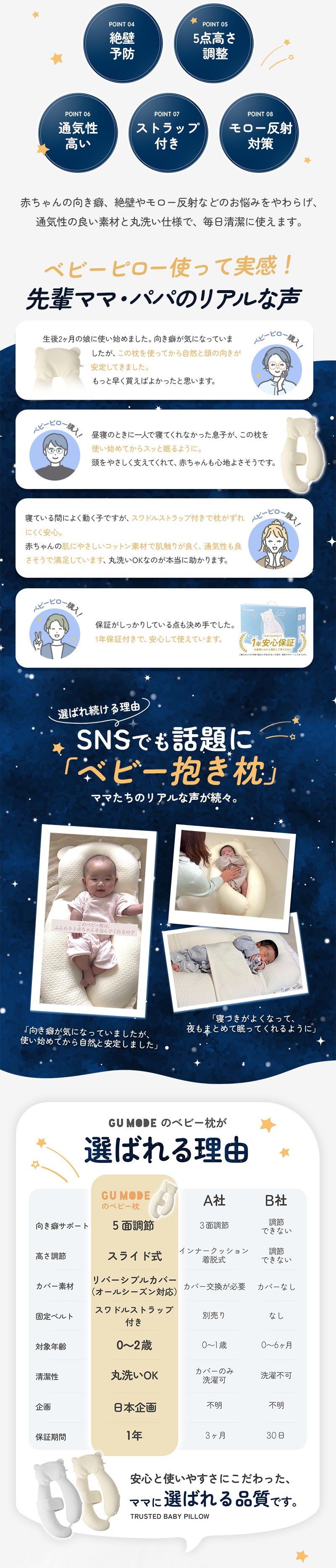 GUMODE ベビー抱き枕 新生児から使える 向き癖防止 赤ちゃん枕 頭の形 絶壁予防枕 寝返り防止 5方向高さ調整丸洗いOK 0〜24ヶ月 モロー反射 出産祝いギフト 爆買