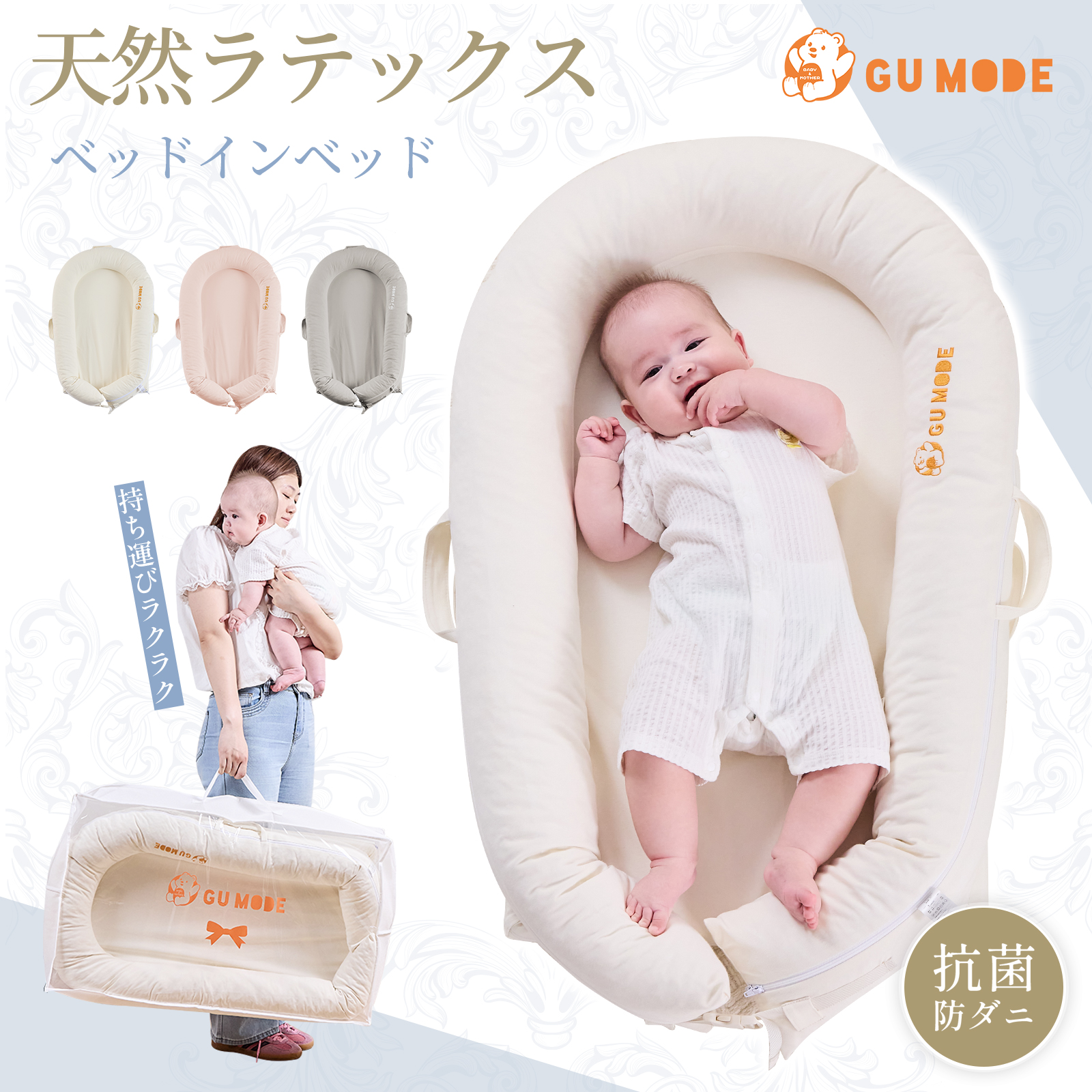 GU MODE ベビーネスト ベッドインベッド 新生児用 ベビーベッド 天然ラテックス 高反発サポート 防ダニ抗菌 ノンホルムアルデヒド 防水カバー 通気性 爆買