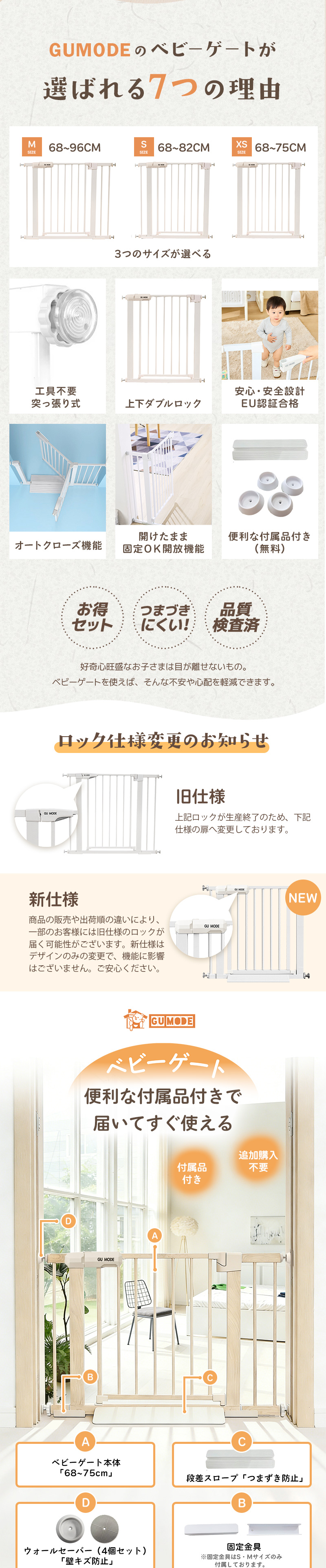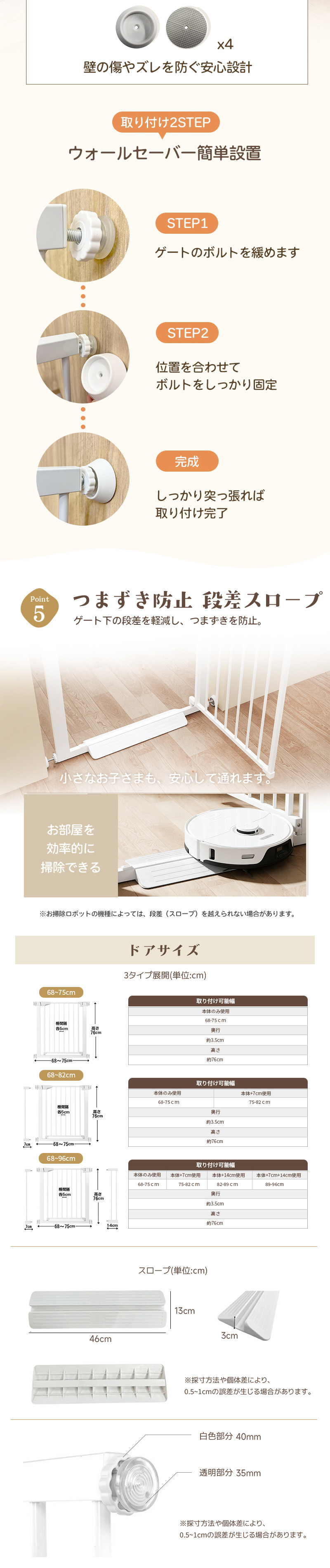 GUMODE ベビーゲート (段差解消スロープ付き ウォールセーバー4個セット付き)ベビーフェンス セーフティゲート スチールゲート 階段上 高さ76cm 拡張可能 爆買
