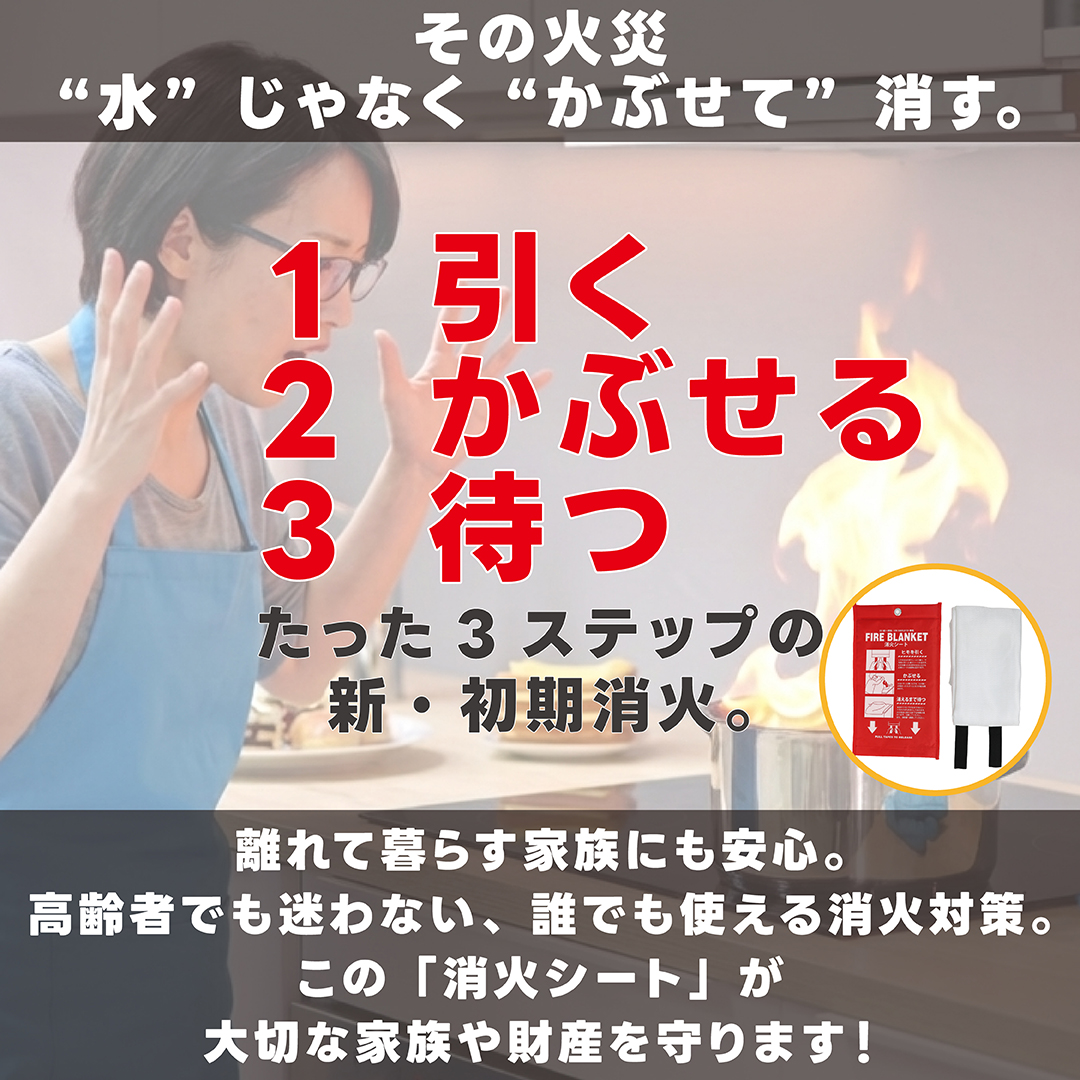 消火器 家庭用 消火シート 1m×1m 初期消火 火事 火災 かぶせるだけ 角利 KAKURI 89230
