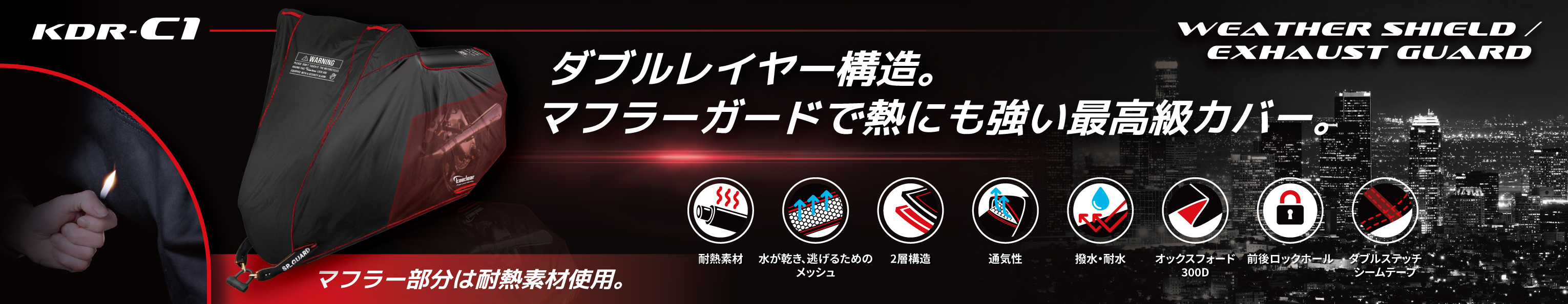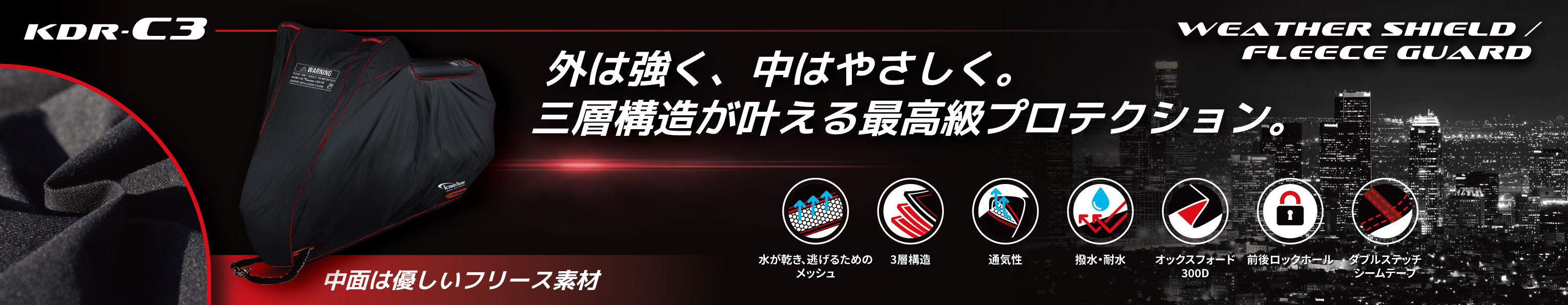 ![]() 裏地フリース素材の厚手の生地で車体をしっかり保護! 三層構造のバイクカバー KDR-C3 |