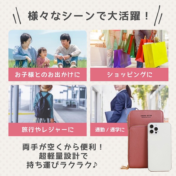 その日の気分合わせてファッションを楽しめる!またショルダーバッグとしてまたはポーチ、斜めかけバッグ、携帯ケースとしていろんな楽しみ方があります!