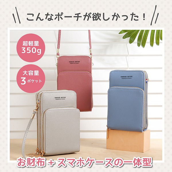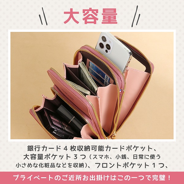 カード、お札、小銭、化粧品などが入るからとても便利!ショルダーバッグとしてもお使い頂けます。