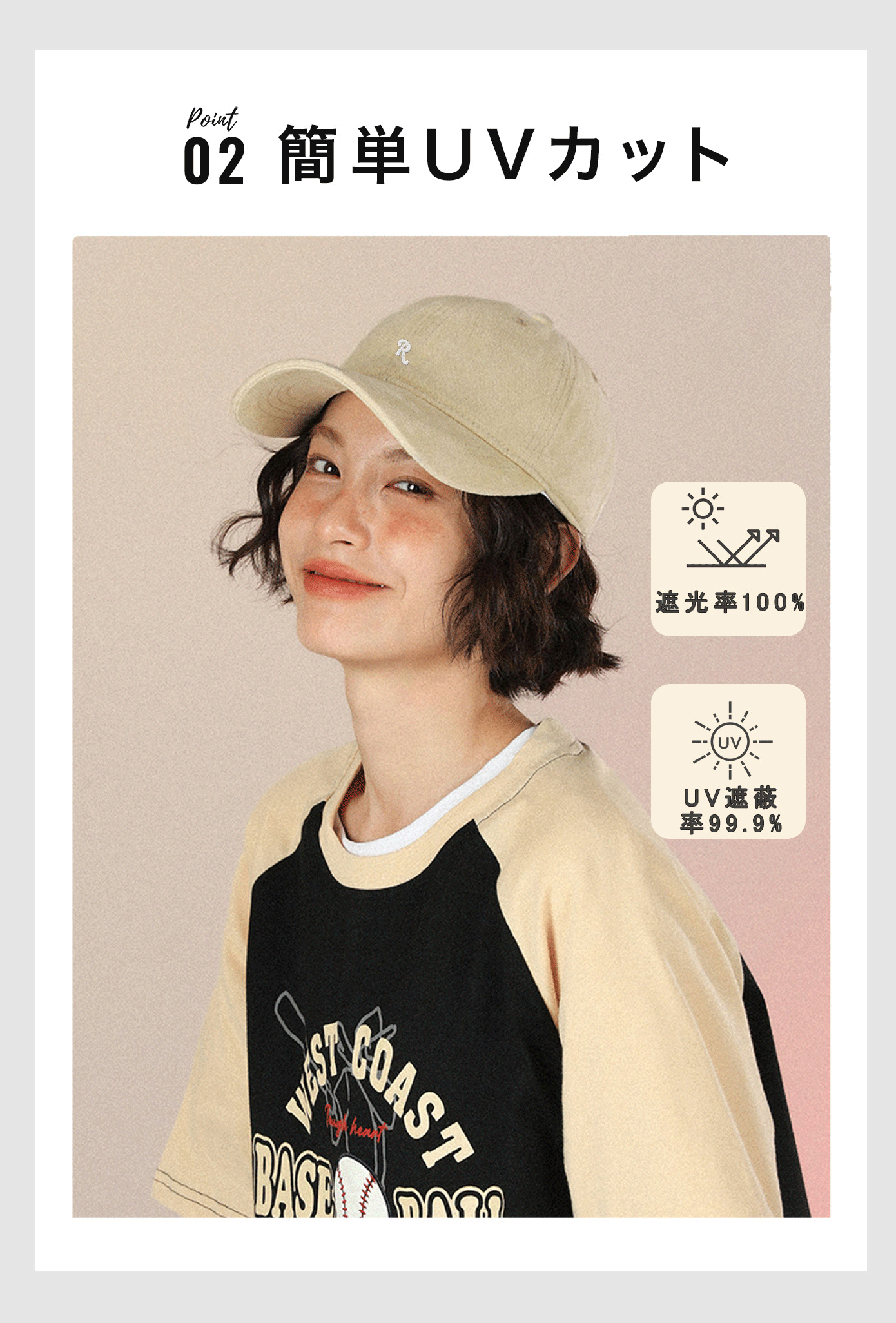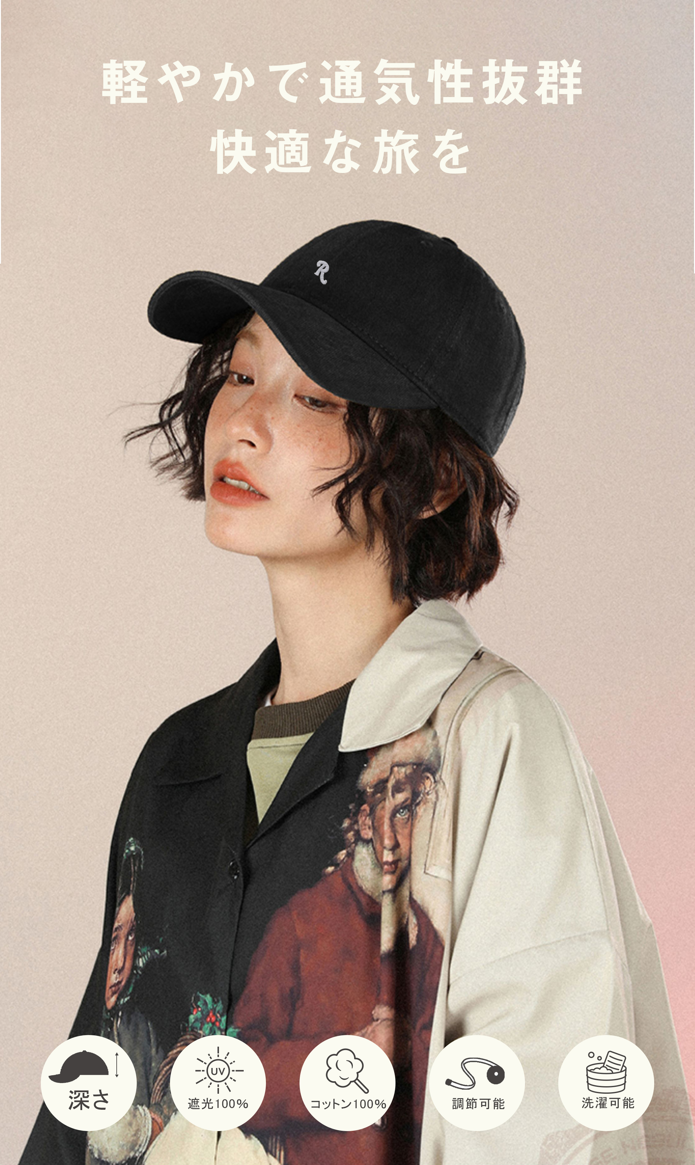 UVカット機能付きで、通勤・通学・旅行・ランニングなど幅広いシーンに最適。軽やかコットン素材が通気性をアップし、暑さ対策にもバッチリ対応◎