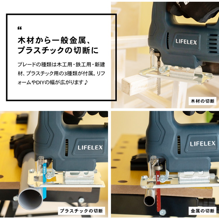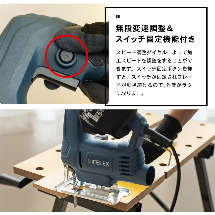 変速ジグソー ジグソー 電動 変速タイプ 切断用 木工 DIY 作業用 曲線切り 角度切り 対応 コンパクト 木材 新建材 軟銅板 LIFELEX コーナン