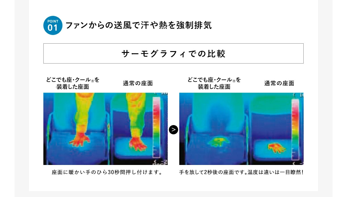 | 製品説明 | オフィスワークやスポーツの屋外観戦が快適に! 長時間座っても涼しく、オシリがムレません。 コンパクトに丸めることもできます。 ※本製品をご使用いただくには、単3電池4本が必要となります。 |
