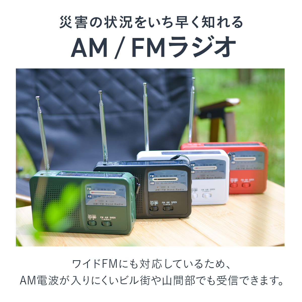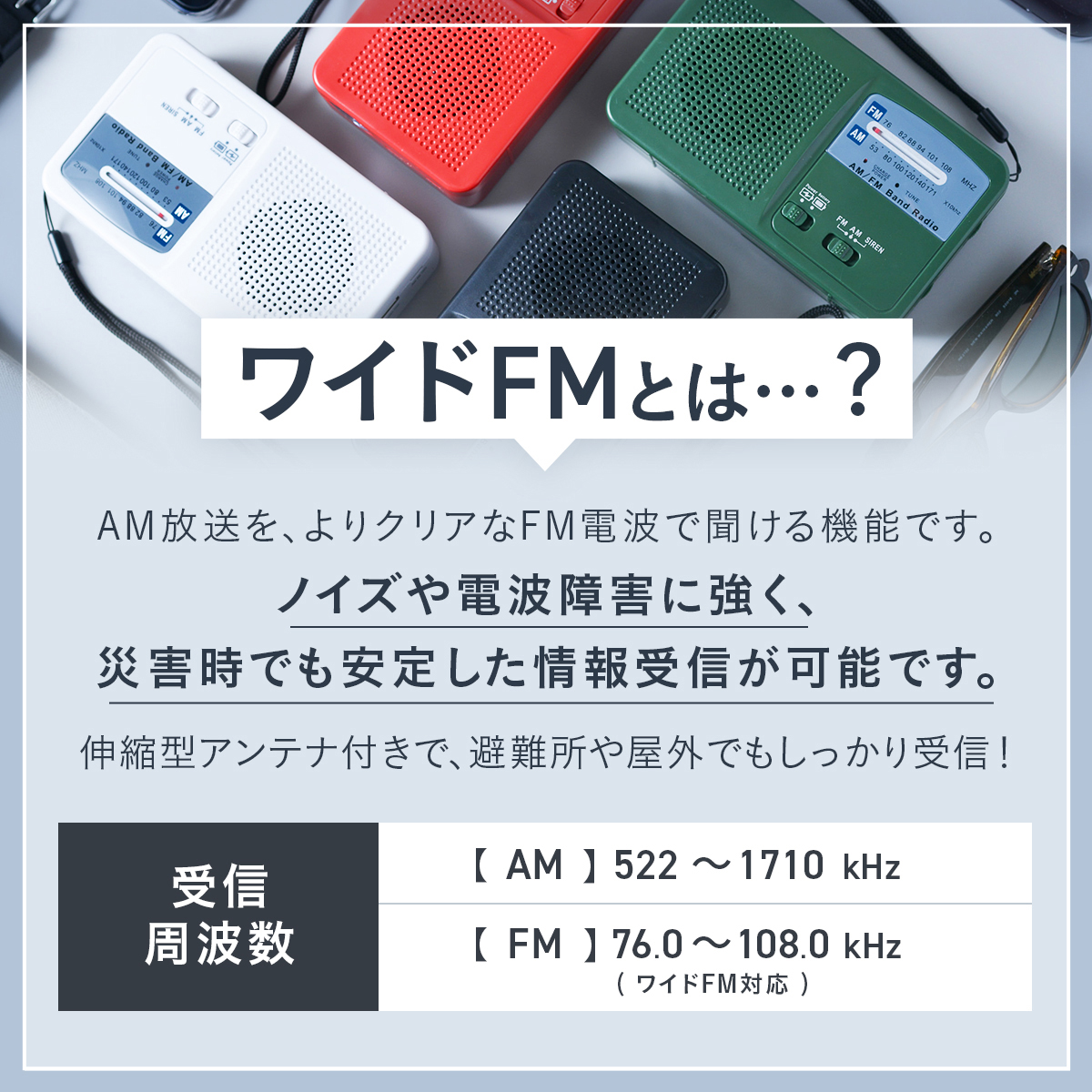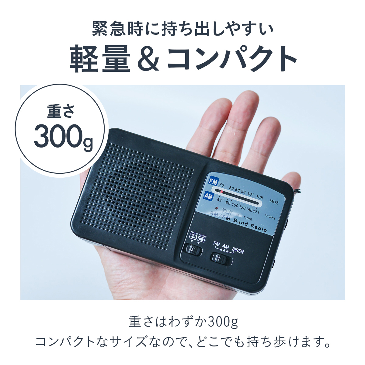 ●AM-FMラジオ機能(ワイドFM対応)、サイレン機能
