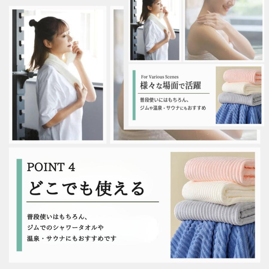 ・特徴:ふわとろ大判サイズのバスタオル。厚手の柔らかい肌触りが気持ち良いバスタオルです。ジムなどでのシャワータオルや温泉・サウナでの利用、出産祝いや内祝いのギフトなどにも人気の商品です。