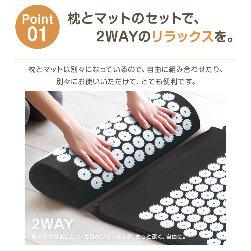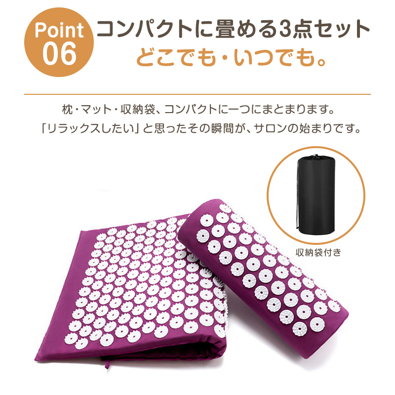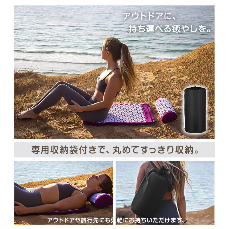 指圧マット 針マット 枕付き 3点セット ツボ押し マッサージ マット 折りたたみ リラックス ヨガ ストレッチ 大きい 大判 幅広 収納袋付