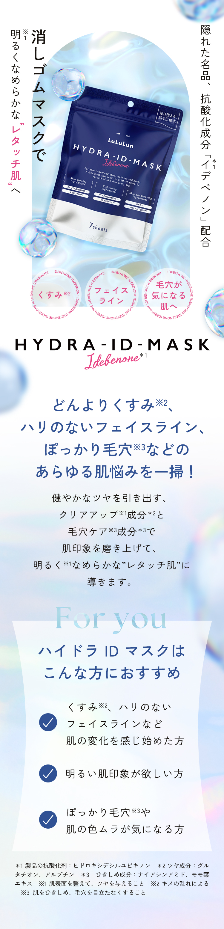 【公式】ルルルン ハイドラ ID マスク 7枚入 LuLuLun シート パック フェイスマスク イデべノン 抗酸化成分 ハイフシート 美容 潤い ハ透明感 低刺激