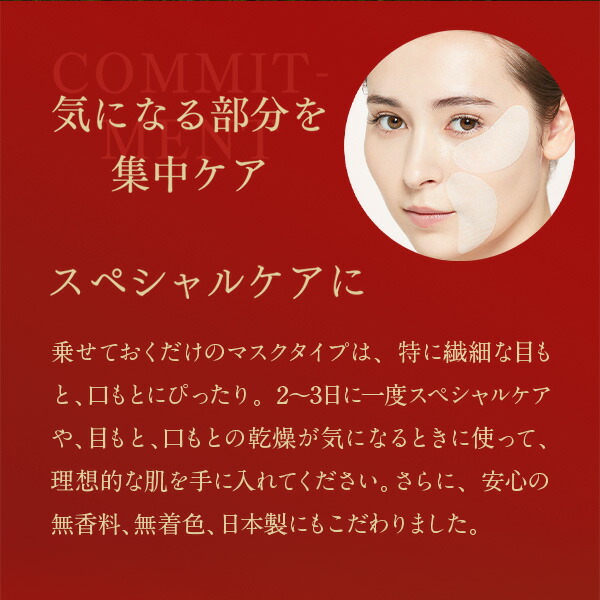 傷や腫れもの・湿疹・かぶれ・ただれなどの症状がある時にはお使いにならないでください。 お肌に異常が生じていないかよく注意して使用してください。 化粧品がお肌に合わない時、使用中または使用したお肌に直射日光があたり、赤み・腫れ・かゆみ・刺激・色抜け(白斑等)や黒ずみ等の症状があらわれた場合には使用を中止し、皮膚科専門医等にご相談されることをおすすめします。 一度お使いになったマスクは、衛生上、繰り返してお使いにならないでください。また、一度取り出したマスクは多く出しすぎた時でも袋に戻さないでください。