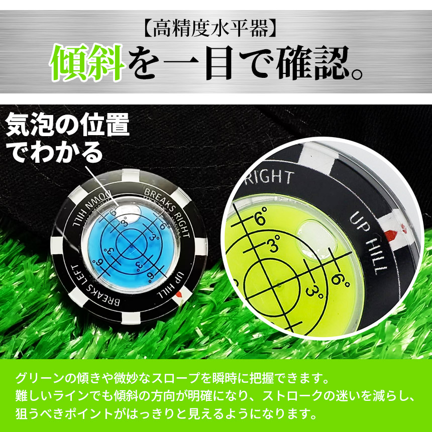 ゴルフマーカー 水平器付き パターライン 読みやすい グリーン傾斜確認 高精度レベル内蔵 マーカー おしゃれ 練習用品 パット向上 ゴルフアクセサリー