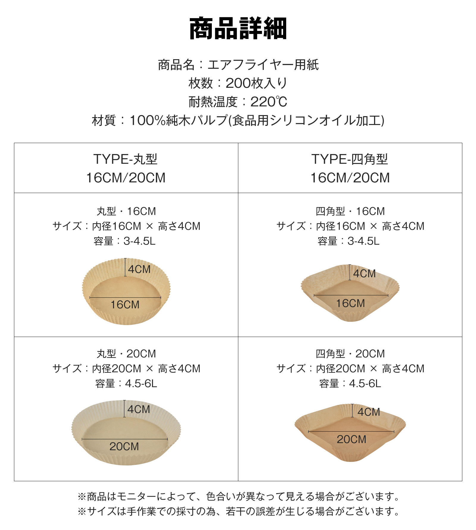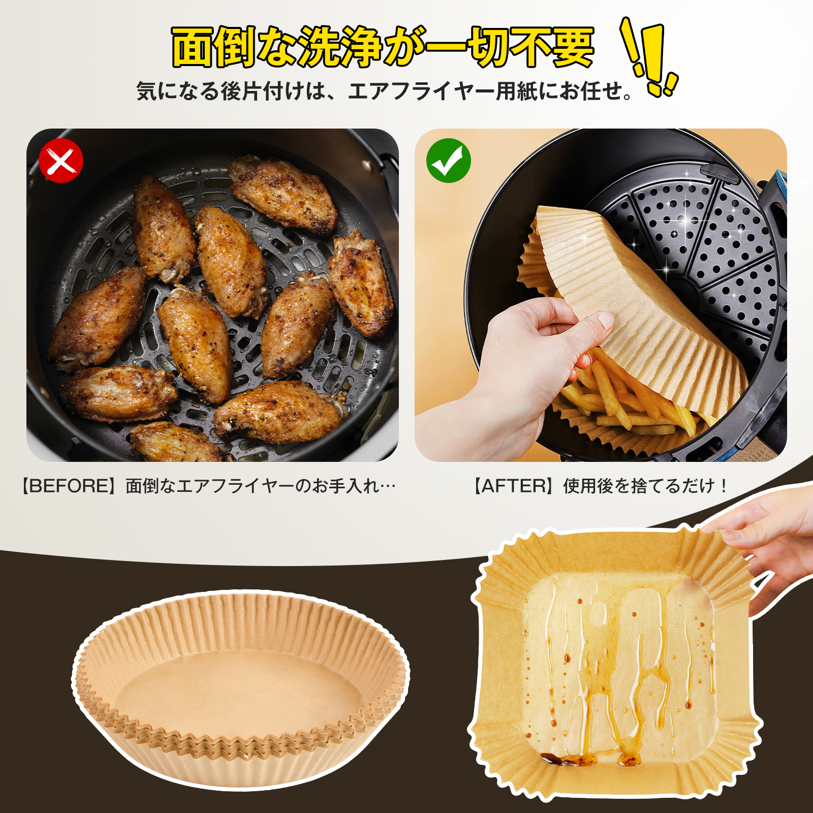 【200枚入り】エアフライヤー シート エアフライヤー用紙 使い捨て 16cm 20cm せいろ 蒸し紙 ノンフライヤー紙 丸型 四角 せいろシート セパレート紙
