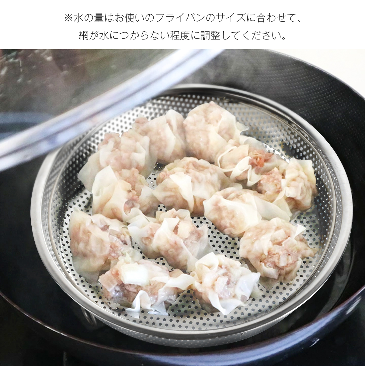 この「蒸しざる」は、ご家庭のフライパンやお鍋に乗せるだけで、手軽に本格的な蒸し料理を楽しめるアイテムです。耐久性と衛生面に優れたステンレス製で、日常使いにぴったり。食洗機対応でお手入れもラクラクです。