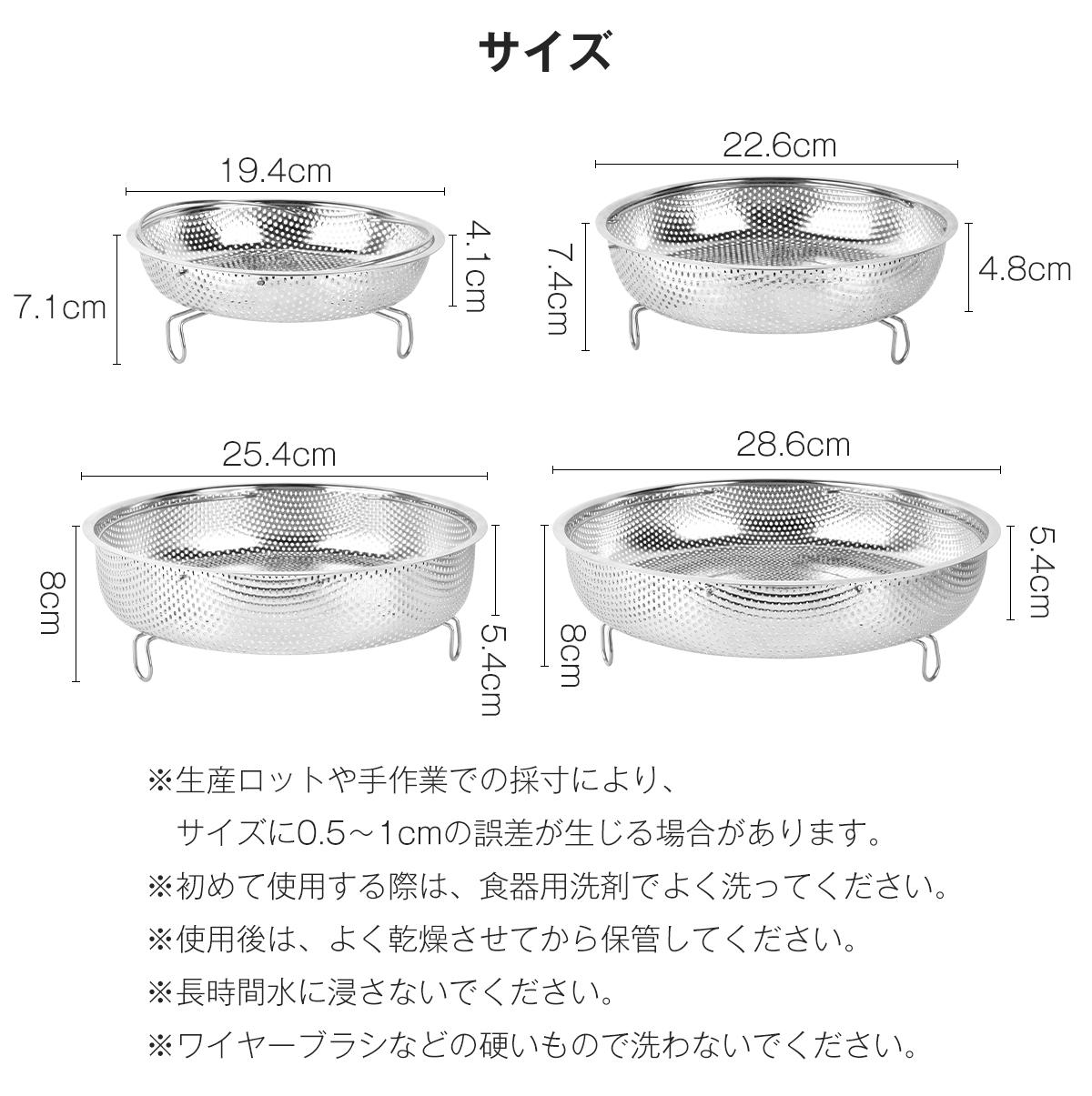 サイズは生産ロットにより0.5〜1cm程度の誤差が生じる場合がございます。予めご了承ください。この蒸しざるを使えば、健康的な蒸し料理が日常の食卓に手軽に加わります。家族の健康を考えた料理や、忙しい日の時短調理にぜひお役立てください。