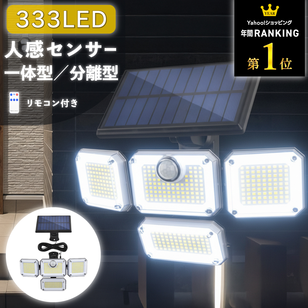 センサーライト 屋外 led 防水 ソーラー 4面パネル 333led リモコン式 明るい 人感 センサー ガーデンライト ソーラーライト 防犯 玄関 庭