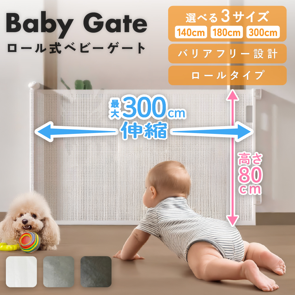 【140cm 4780円〜】ベビーゲート ロール式 180cm ペットゲート ベビーフェンス ペット 赤ちゃん 犬 階段 上 下 ゲート 100cm以上 柵 キッチン ロール ワイド