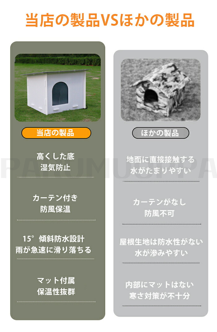 【防水・保温】PP生地で作られています。耐久性、防水性、耐候性だけ でなく、暖かく快適で猫に最適なキャットハウスです。