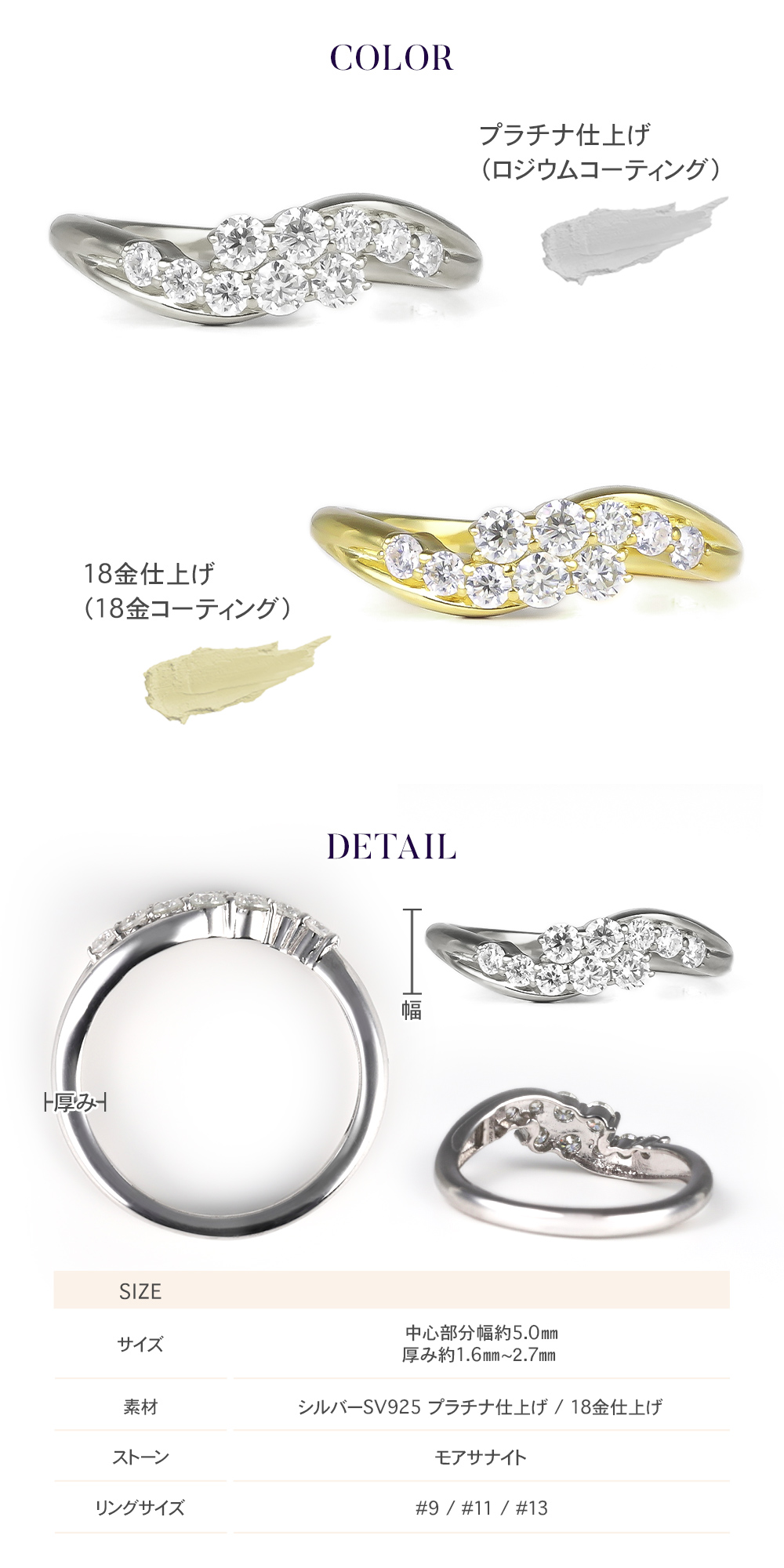 シルバー SV925 プラチナ仕上げ(ロジウムコーティング)/18金仕上げ(18金コーティング)