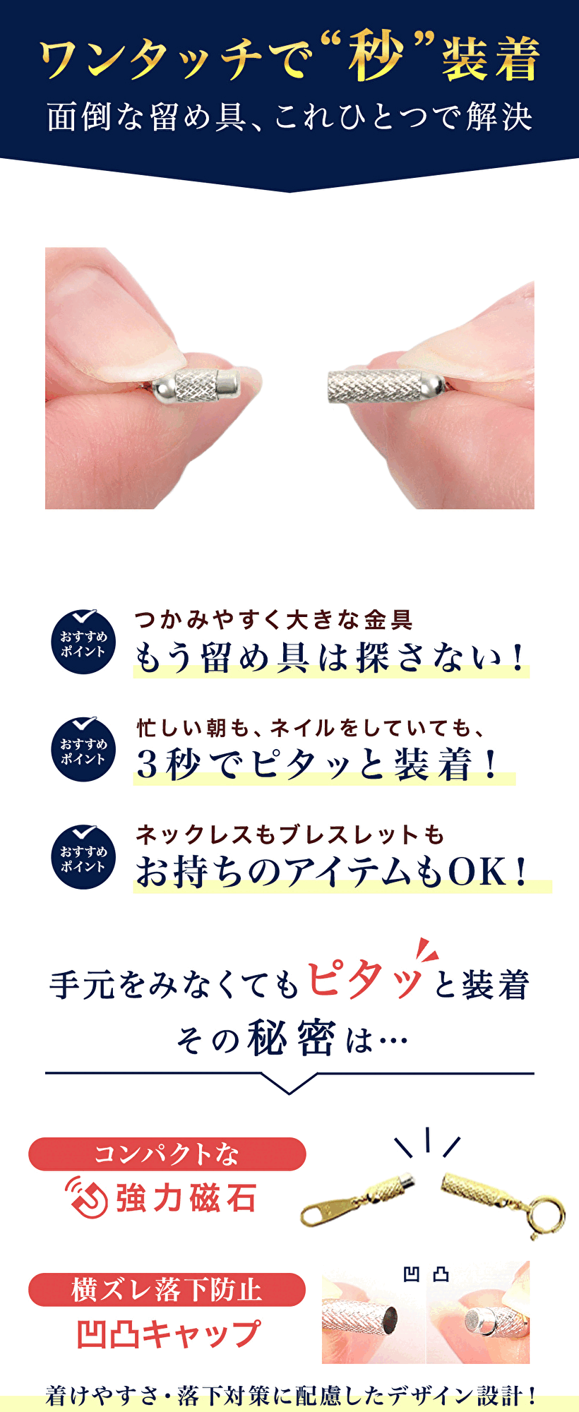 ネックレスの引き輪 や フック金具 に 装着 すれば, クラスプ 部分が マグネット になっているため 簡単 に 付け外し が出来ます。