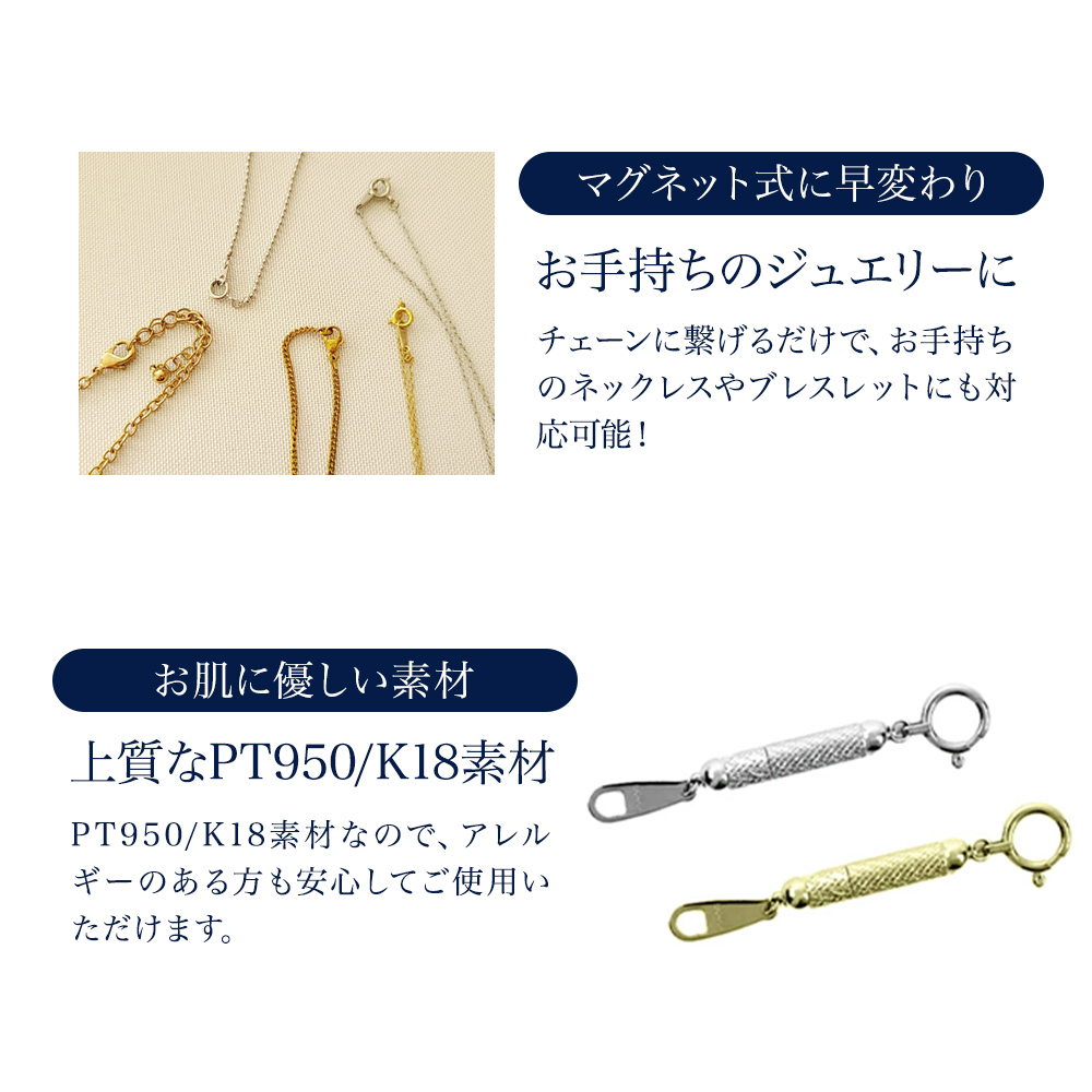 ネックレス 留め具 レディース マグネット クラスプ プラチナ 18金 K18 PT950 ゴールド 金属アレルギー 対応 母の日 便利 プレゼント