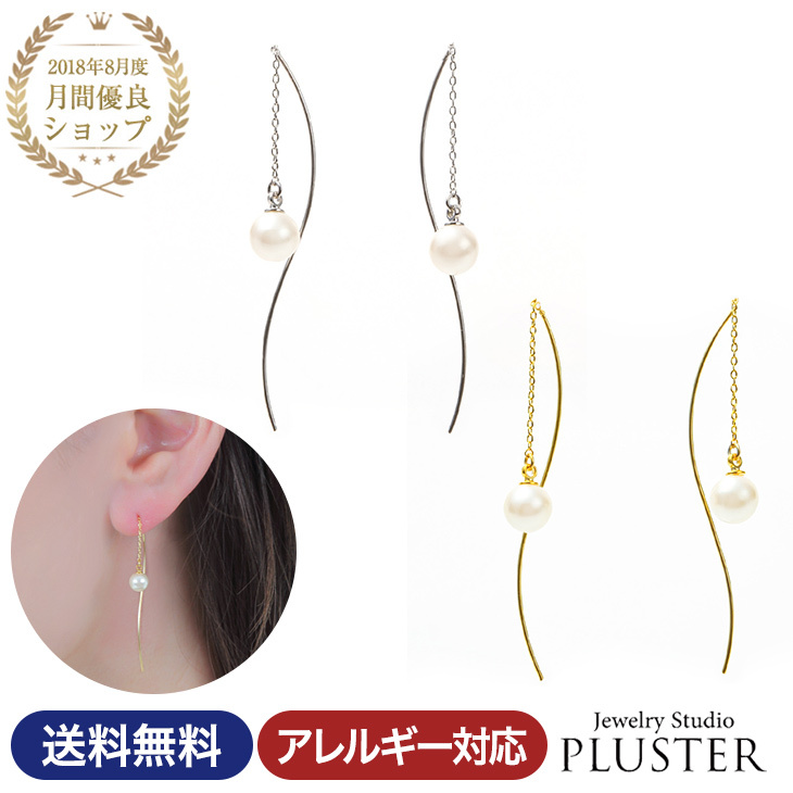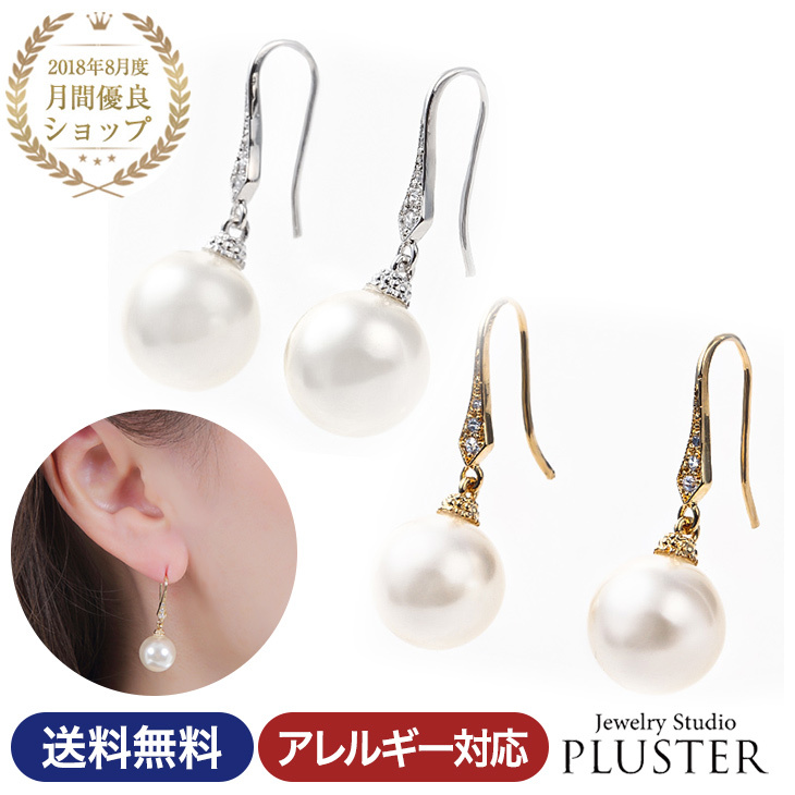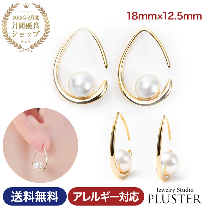 ピアス レディース パール 一粒 アレルギー対応 ゴールド パール 一粒 揺れる フック パールピアス 母の日 女性