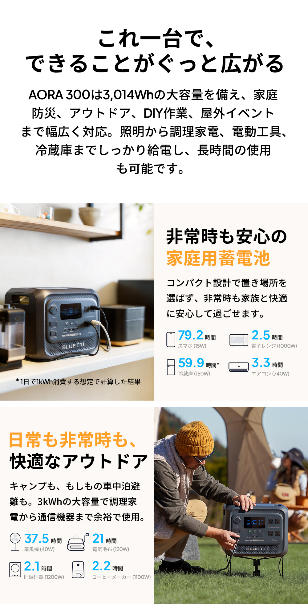 【商品コード】Aora 300 3014.4Wh 大容量 2000W 高出力 長寿命
