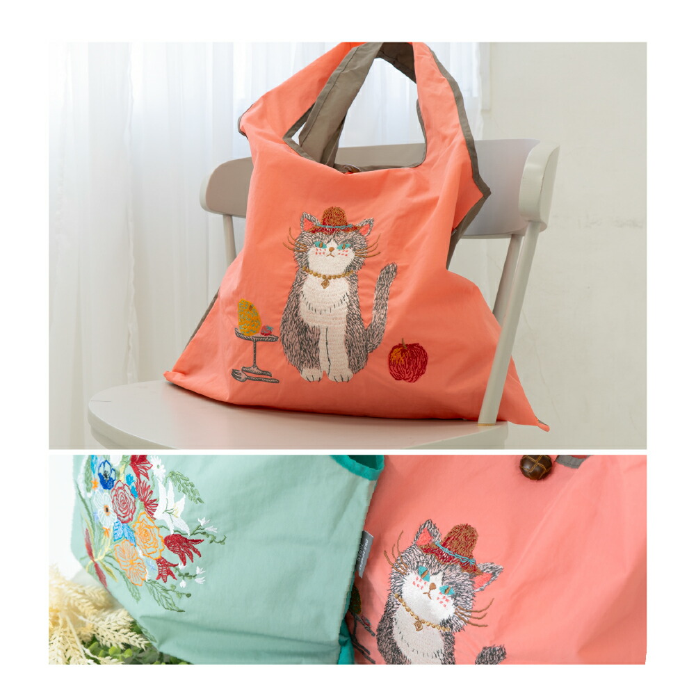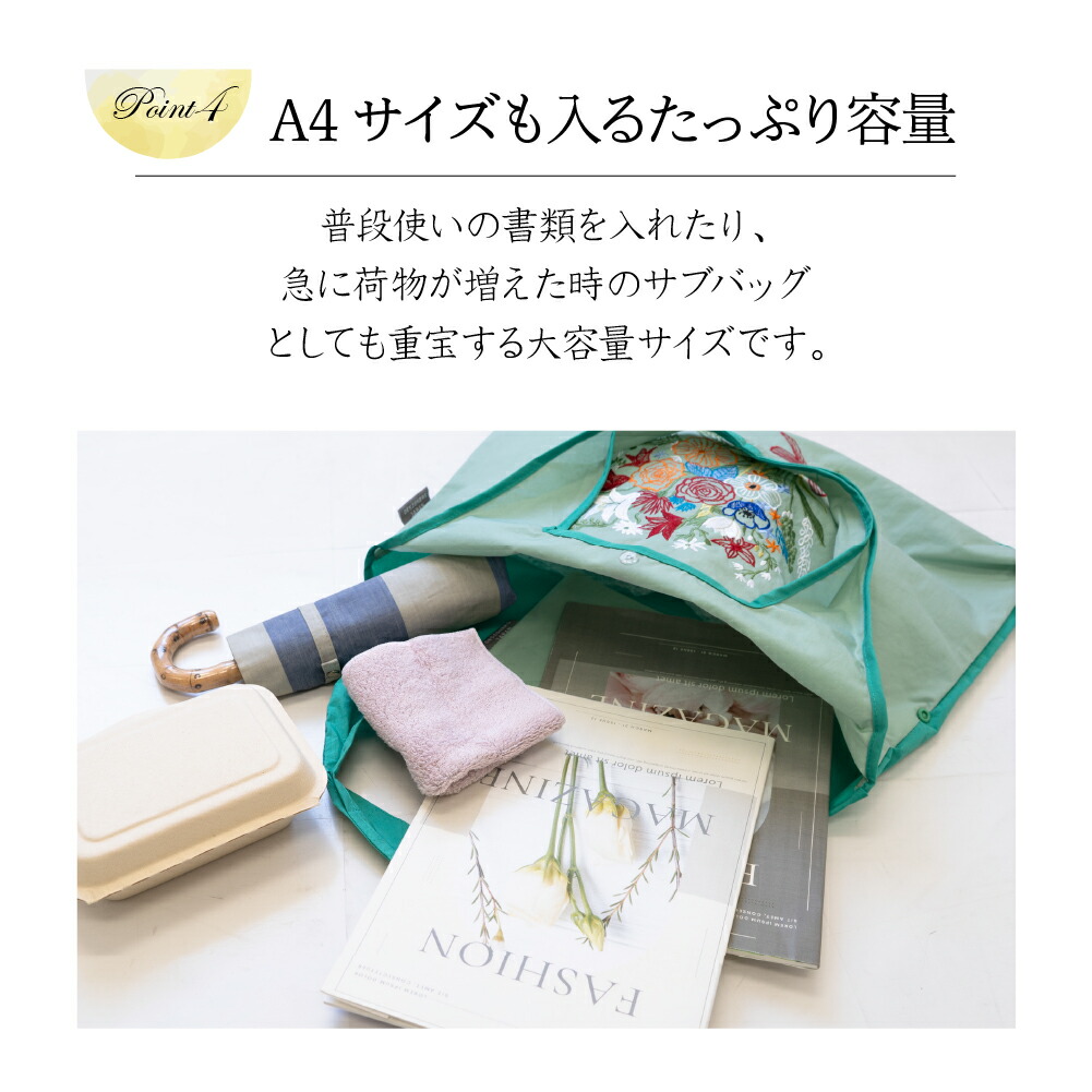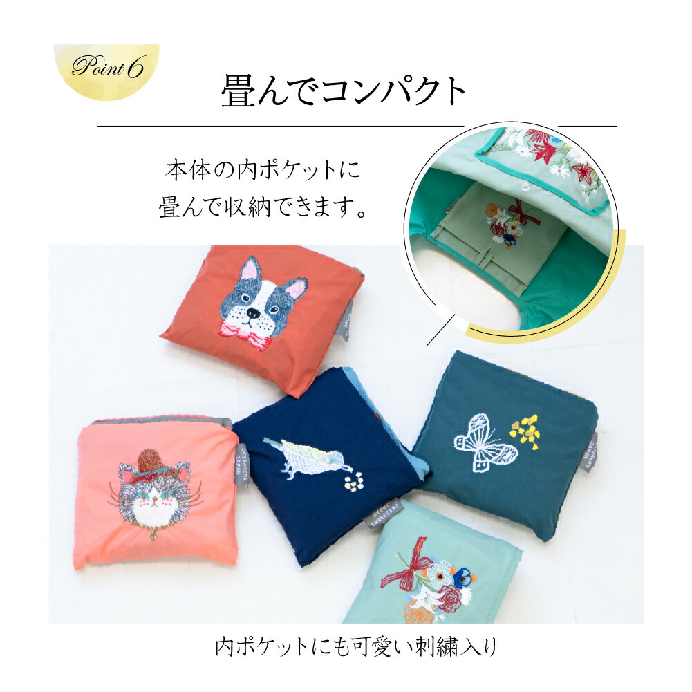 刺繍エコバッグ 刺繍トートバッグ 刺繍バッグ サブバッグ おしゃれ 折りたたみ マチ付き 折り畳み プレゼント 誕生日 女性 20代 30代 40代 50代 60代