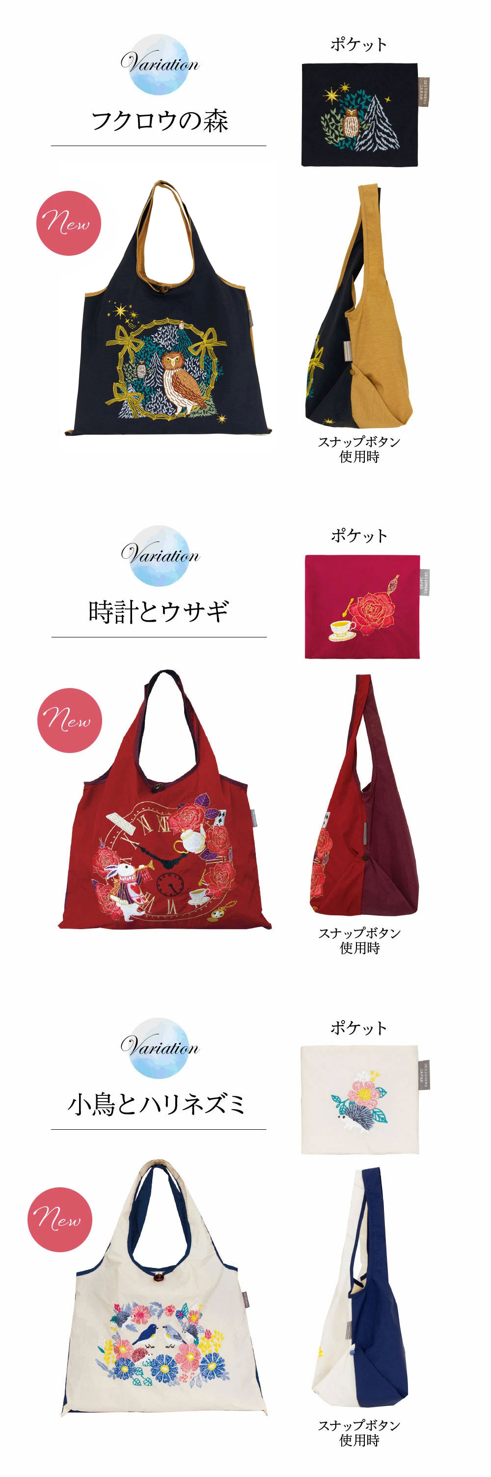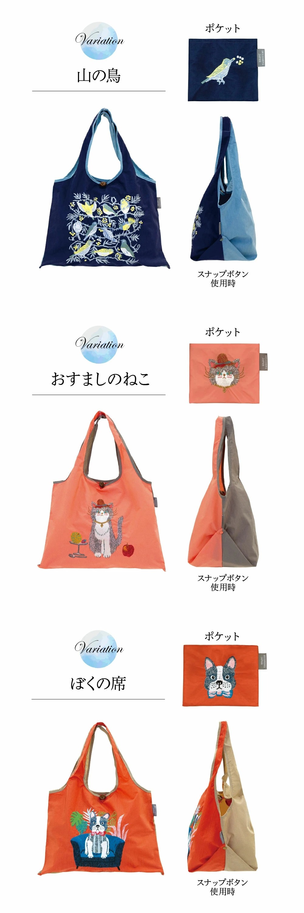 北村ハルコの手書きタッチが刺繍によって立体的になり、生き生きとしたデザインに仕上がりました。