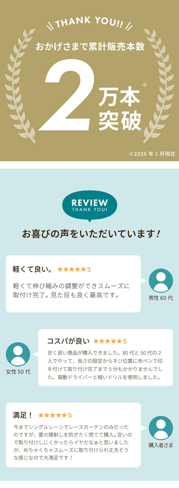 ドライバー1本で簡単取付できるカット不要の伸縮カーテンレール