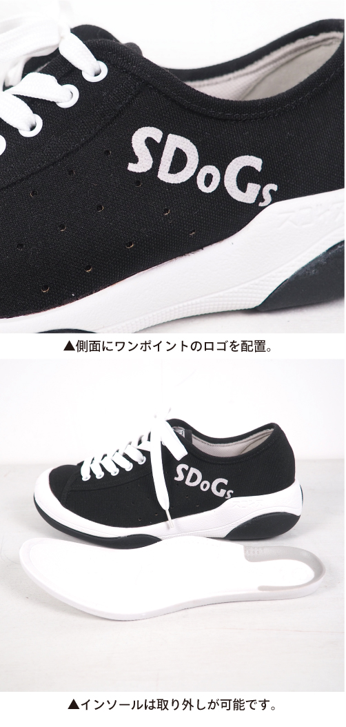スゴィヌ SDoGs シューズ スニーカー メンズ レディース 白 黒 厚底 紐 歩きやすい ペタンコ 履きやすい ロック 撥水 抗菌防臭 shoes