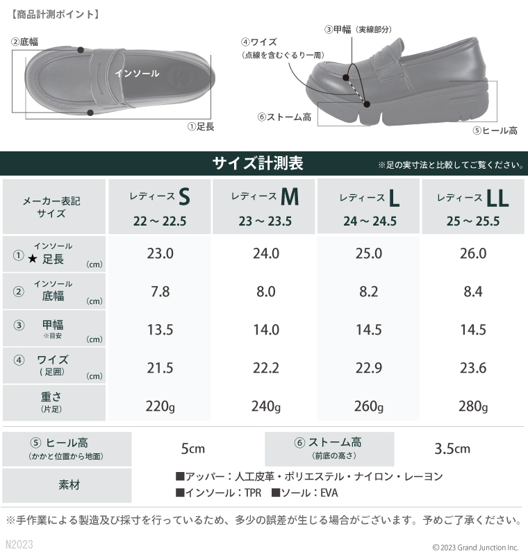 | サイズ展開 | レディース S(22-22.5cm) M(23-23.5cm) L(24-24.5cm) LL(25-25.5cm) ※上記 ( ) 内はメーカーが設定する基準サイズとなります。足の形、好みによって異なりますので参考程度にご確認ください。 ※サイズについての詳しい情報は当ページ内「サイズについて」をご確認ください。 |