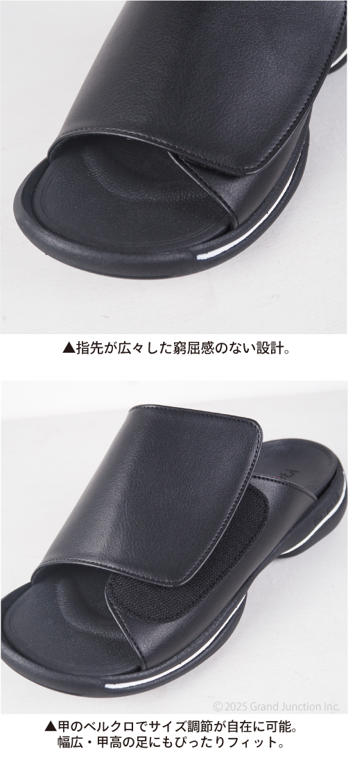 太いベルクロ(マジックテープ)仕様になっており、足の形に合わせて留められるのでフィット感が増し、甲高さんにもオススメ。