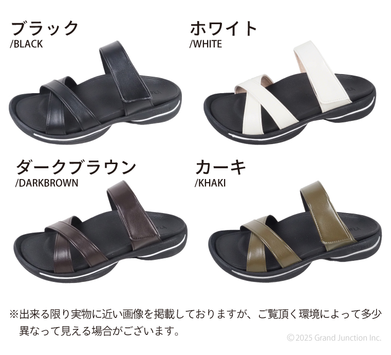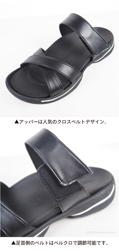 ベルトの一部はベルクロ(マジックテープ)で調節が可能なので甲高の方にもオススメです。 つっかけタイプなので、ちょっとそこまでのおでかけとしても使えるアイテムです。